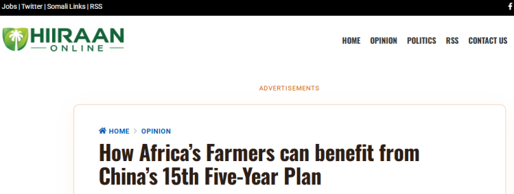 索馬里新聞網(wǎng)站希蘭在線(Hiiraan online)發(fā)表了題為《中國(guó)“十五五”藍(lán)圖將如何惠及非洲農(nóng)民》的文章。