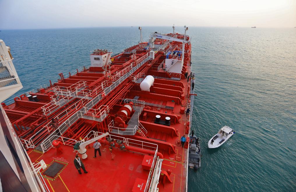 這是2019年7月21日在霍爾木茲海峽附近拍攝的英國籍油輪“史丹納帝國”號。新華社/伊朗學(xué)生通訊社