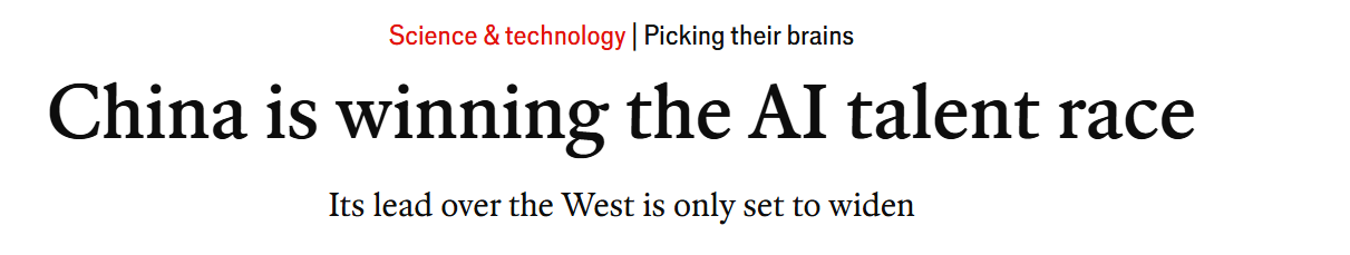 英國(guó)《經(jīng)濟(jì)學(xué)人》雜志網(wǎng)站近日發(fā)表題為《中國(guó)正贏得人工智能人才競(jìng)賽》的文章。文章認(rèn)為,中國(guó)領(lǐng)先于西方國(guó)家的人才優(yōu)勢(shì)正在擴(kuò)大。