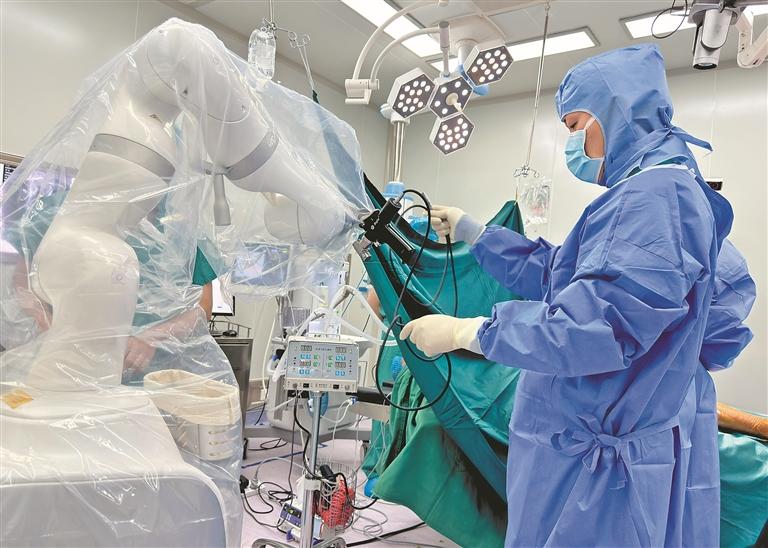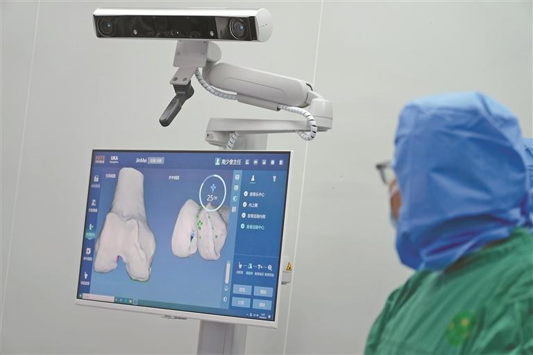 手術中,醫(yī)生正根據(jù)機器人提供的參數(shù)做調(diào)整。
