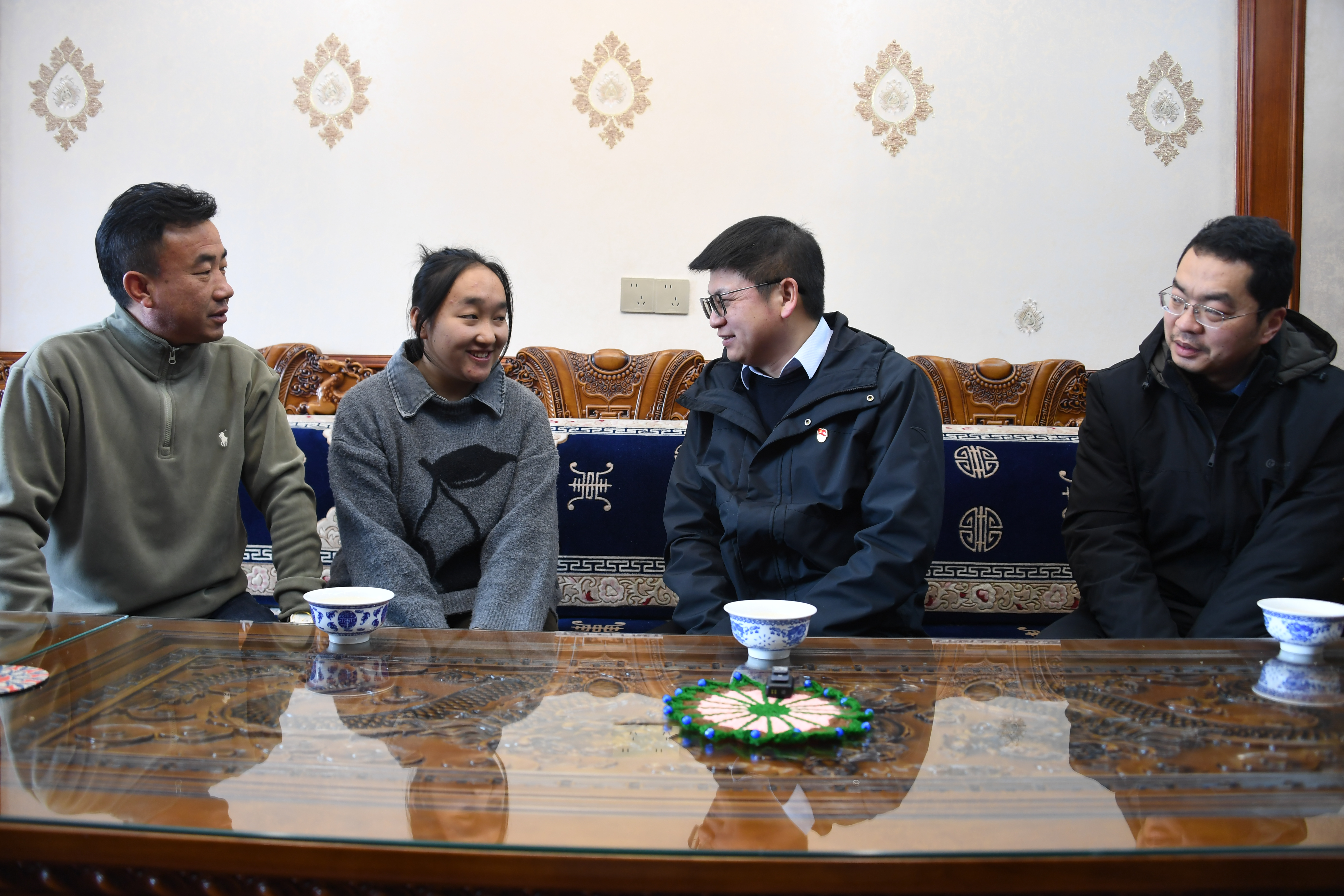 巡查完工地后,夏洪和同樣留守的援藏教師冉越溢,又準(zhǔn)備對高三學(xué)生旦增貢宗進(jìn)行一次家訪。推開旦增貢宗家的門,一股暖意撲面而來??蛷d里,嶄新的五彩“切瑪”盒裝點著春節(jié)、藏歷新年的喜慶氛圍。旦增貢宗的父母熱情地將夏洪和另一位老師迎到家里,倒上熱乎的酥油茶,端上新炸的“卡塞”和風(fēng)干牦牛肉。