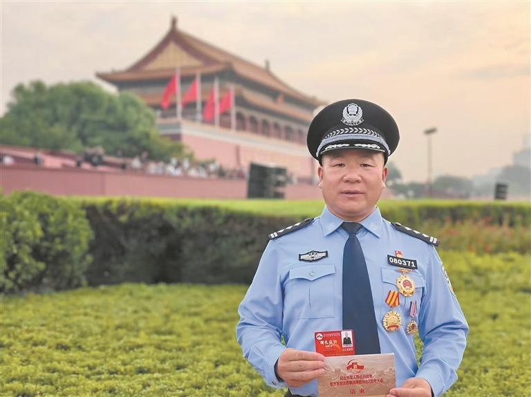 “作為一名基層公安民警代表,在北京天安門廣場現(xiàn)場參加紀念中國人民抗日戰(zhàn)爭暨世界反法西斯戰(zhàn)爭勝利80周年大會,特別高興、無比自豪?!庇^看閱兵后,周建鵬說:“看到受閱部隊鏗鏘有力的步伐、大國重器構(gòu)筑的鋼鐵長城,心潮澎湃、激動萬分。這不僅是一場莊嚴的愛國主義教育,更是奮進中國式現(xiàn)代化建設(shè)新征程的‘動員令’?!?/p>