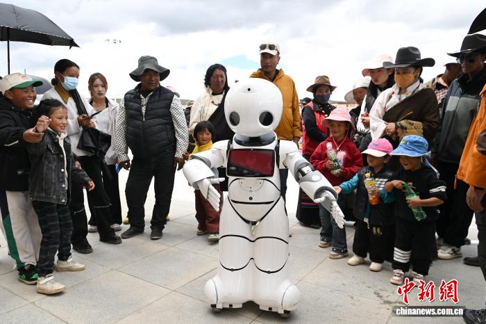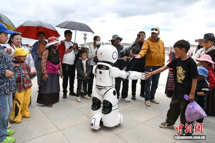 9月6日,西藏自治區(qū)那曲市恰青賽馬節(jié)現(xiàn)場(chǎng),一場(chǎng)別開生面的互動(dòng)熱鬧上演。機(jī)器人的驚喜亮相,為這座古老的草原盛會(huì)注入了新鮮科技感。它們?cè)煨酮?dú)特、動(dòng)作靈活,大家紛紛上前與機(jī)器人握手、合影,互動(dòng)氛圍格外熱烈。這種傳統(tǒng)節(jié)日與現(xiàn)代科技的創(chuàng)新融合,正碰撞出別樣的節(jié)日火花。圖為當(dāng)?shù)孛癖娕c機(jī)器人互動(dòng)。中新社記者 貢嘎來(lái)松 攝