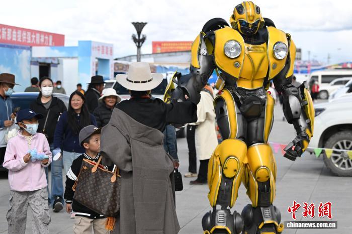 9月6日,西藏自治區(qū)那曲市恰青賽馬節(jié)現(xiàn)場(chǎng),一場(chǎng)別開生面的互動(dòng)熱鬧上演。機(jī)器人的驚喜亮相,為這座古老的草原盛會(huì)注入了新鮮科技感。它們?cè)煨酮?dú)特、動(dòng)作靈活,大家紛紛上前與機(jī)器人握手、合影,互動(dòng)氛圍格外熱烈。這種傳統(tǒng)節(jié)日與現(xiàn)代科技的創(chuàng)新融合,正碰撞出別樣的節(jié)日火花。圖為機(jī)器人與小朋友互動(dòng)。中新社記者 貢嘎來(lái)松 攝