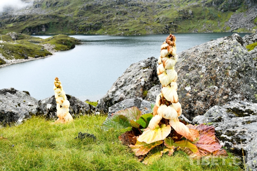 9月的亞東,已漸漸轉(zhuǎn)涼。隨著海拔的不斷上升,眼前的植被從森林、灌叢逐漸向高寒草甸過渡。在亞東海拔4450米的湖畔石灘上,一片“身材高大”,顏色絢爛的植物格外顯眼。這是被稱作“高原寶塔”的植物——塔黃,正以它堅(jiān)韌的生命力向世人展示著自然界的奇跡。