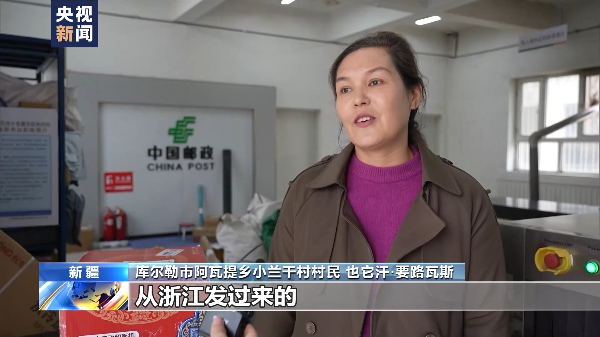 庫爾勒市阿瓦提鄉(xiāng)小蘭干村村民 也它汗·要路瓦斯:我在網(wǎng)上買了一個和面機,從浙江發(fā)過來的。過去拿快遞只能到鄉(xiāng)里,現(xiàn)在直接到家門口,當(dāng)天我就拿到手。