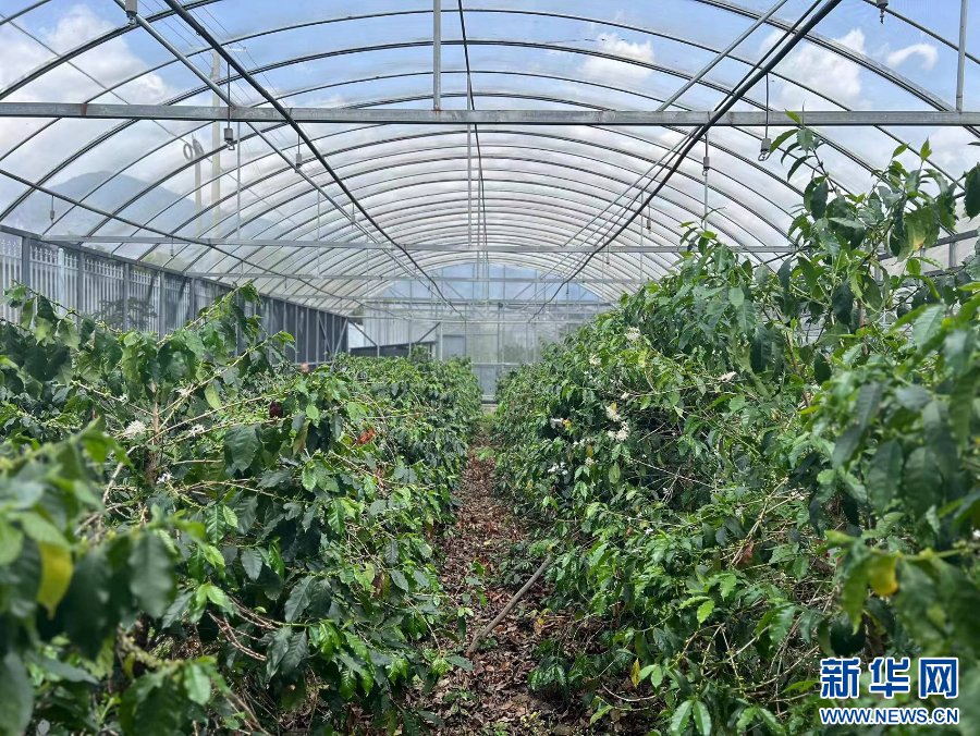山頂一號(hào)咖啡莊園自行培育的咖啡苗(4月2日攝)。新華網(wǎng) 楊楨宇 攝