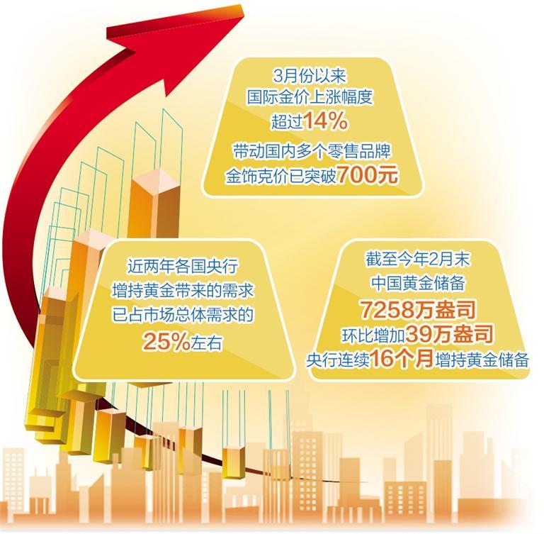 市場分析人士認(rèn)為,今年以來,在美聯(lián)儲貨幣政策確定轉(zhuǎn)向的背景下,疊加近期地緣政治沖突激化,以及全球多國央行對黃金的持續(xù)需求,多因素共同推動了國際金價的強(qiáng)勁上漲。