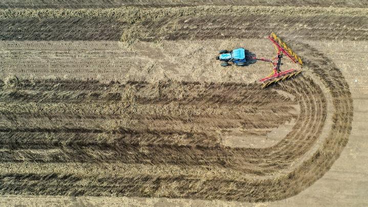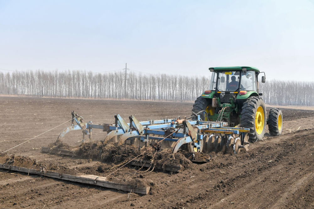 4月2日,在吉林省公主嶺市范家屯鎮(zhèn)乾程農(nóng)民專業(yè)合作社,農(nóng)民駕駛農(nóng)機整理耕地。