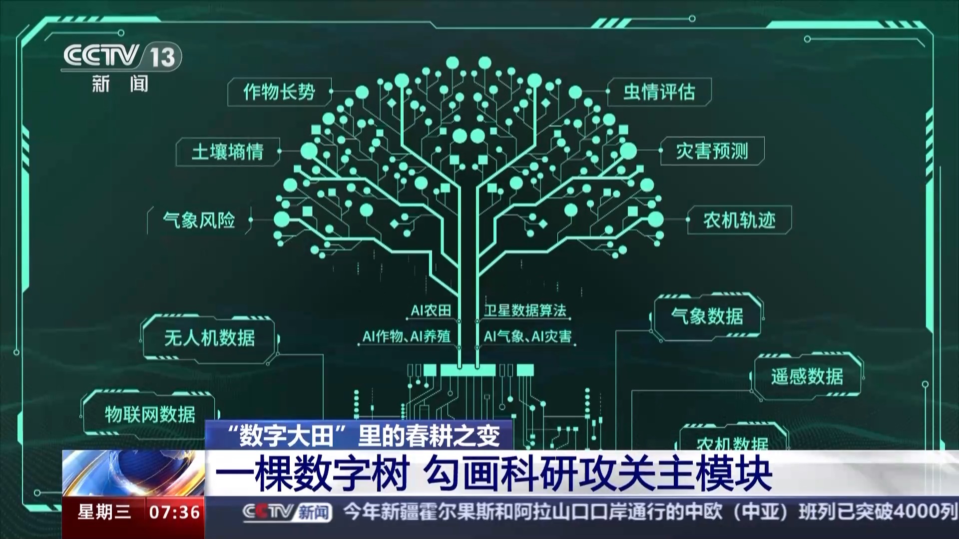 從眼前這個樹狀協(xié)作圖基本可以看出團(tuán)隊(duì)的架構(gòu):樹根是多維大數(shù)據(jù),由遙感衛(wèi)星、氣象、物聯(lián)網(wǎng)等收集從天到地的農(nóng)業(yè)數(shù)據(jù),遙感團(tuán)隊(duì)、氣象團(tuán)隊(duì)負(fù)責(zé)數(shù)據(jù)收集、預(yù)處理;樹干是骨架,由遙感、氣象以及人工智能人員組成團(tuán)隊(duì)建模,對基座數(shù)據(jù)進(jìn)行分析;樹冠是數(shù)據(jù)成果,長出田塊位置、作物長勢、災(zāi)害預(yù)警等信息。最后通過計(jì)算機(jī)工程師的搭建,一塊塊數(shù)字農(nóng)田就出現(xiàn)在屏幕里。