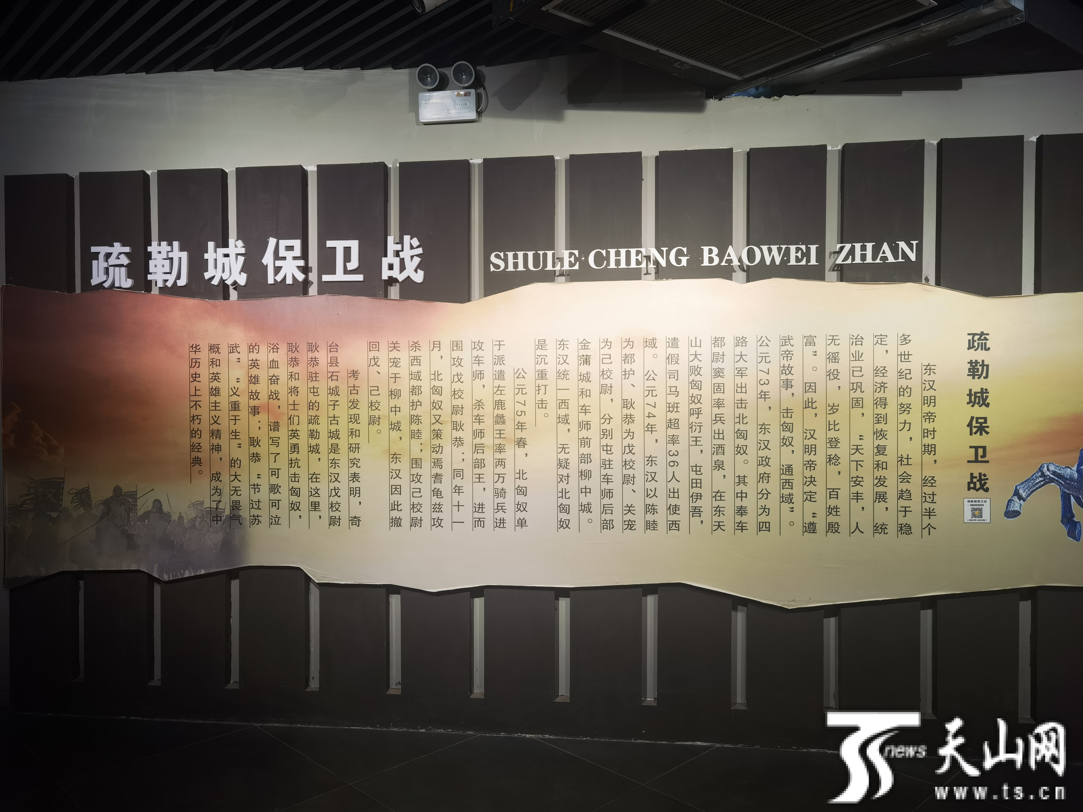 奇臺縣博物館疏勒城保衛(wèi)戰(zhàn)展臺介紹。 天山網(wǎng)-新疆日報(bào)記者銀璐攝