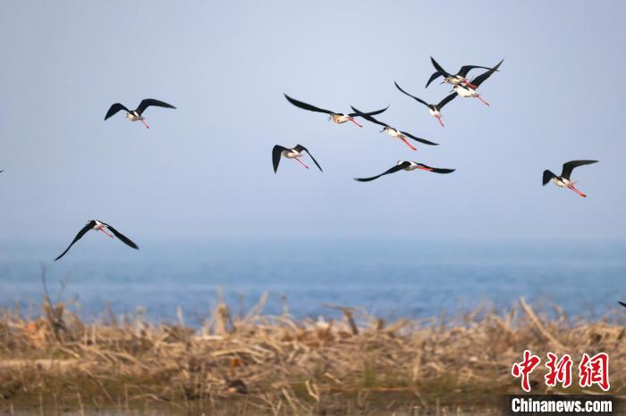 成群黑翅長腳鷸,它們時而緩慢涉水行走,時而自由飛翔,構(gòu)成春日里一幅靈動的生態(tài)畫卷。