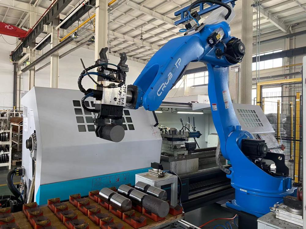 在奧瑞(天津)工業(yè)集團股份有限公司,配重軸自動加工設備正在抓取零部件。新華社記者 尹思源 攝