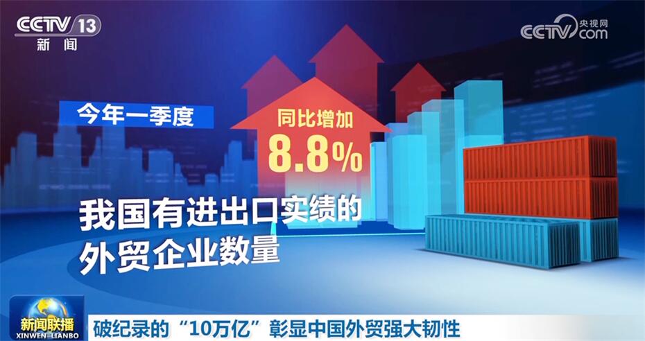 一季度,我國貨物貿(mào)易進(jìn)出口規(guī)模歷史同期首次突破10萬億元,增速創(chuàng)6個(gè)季度以來新高。一季度進(jìn)出口令人欣喜的數(shù)據(jù)彰顯了中國外貿(mào)的強(qiáng)大韌性,提振了人們對實(shí)現(xiàn)今年經(jīng)濟(jì)增長目標(biāo)的信心。