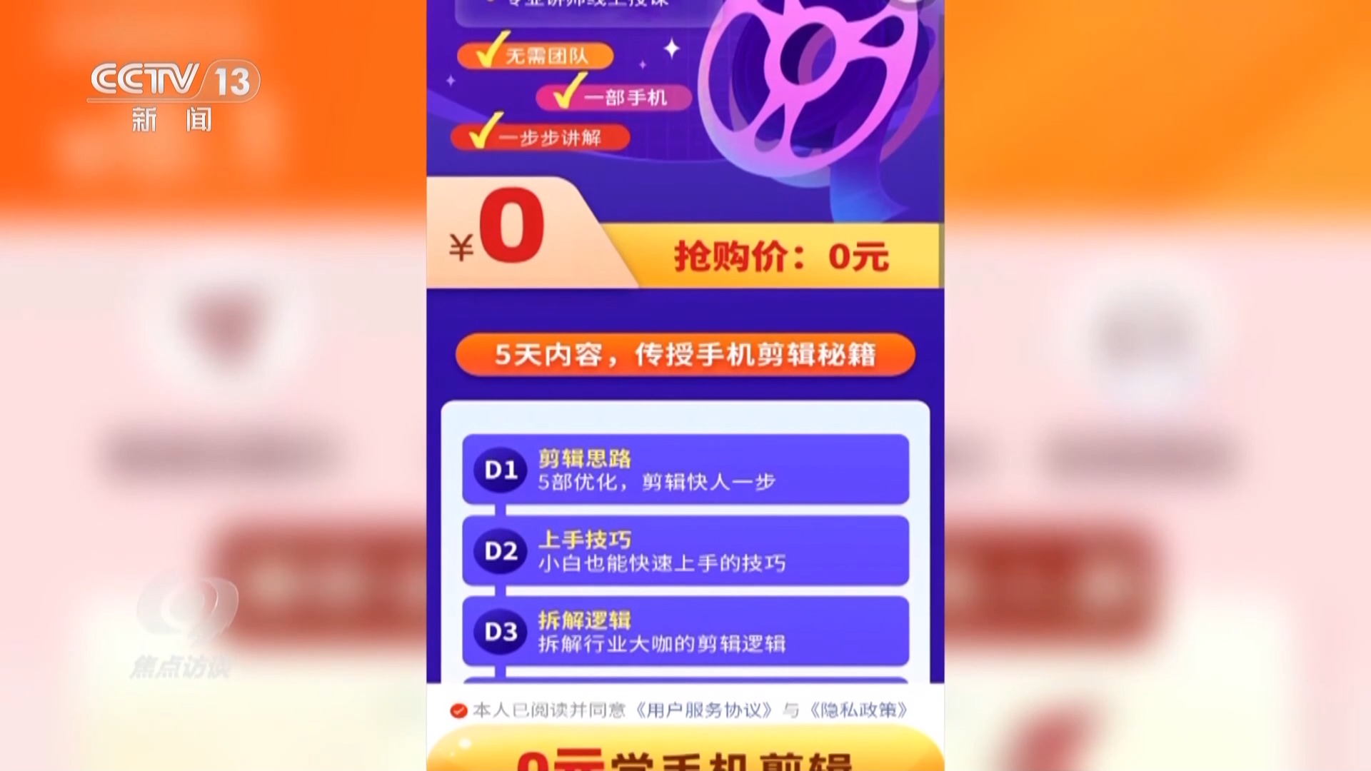 近年來,線上學(xué)習(xí)的普及程度越來越高,行業(yè)不斷發(fā)展壯大的同時,也衍生出一些亂象。部分所謂的培訓(xùn)機(jī)構(gòu)利用消費者急于學(xué)技、創(chuàng)業(yè)的心理制造焦慮,打著“0元學(xué)”的旗號,聲稱可以短期速成、財富增值。這種培訓(xùn)靠譜嗎?真的可以不用花錢就能學(xué)到本事,然后就能掙錢嗎?所謂的“0元學(xué)”里暗藏著哪些套路?