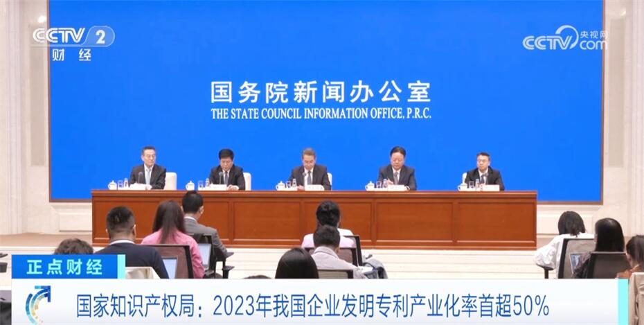 記者4月24日從國際知識(shí)產(chǎn)權(quán)局了解到,2023年,我國企業(yè)發(fā)明專利產(chǎn)業(yè)化率首次超過50%,來看報(bào)道。