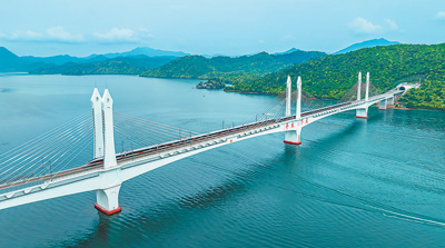 圖為4月26日,復(fù)興號智能動車組列車駛過池黃高鐵太平湖特大橋。王 磊攝(人民視覺)