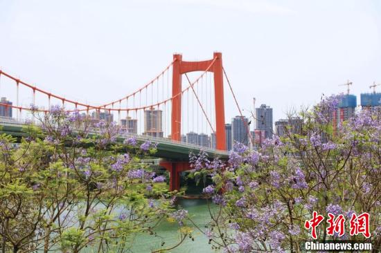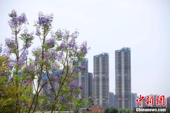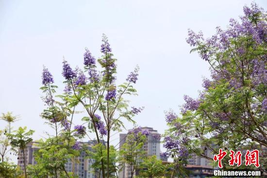 近日,廣西南寧市藍花楹盛開,藍紫色彩為城市增添了一道浪漫美景。