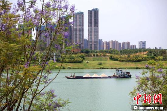 近日,廣西南寧市藍花楹盛開,藍紫色的花朵將街道裝點得如夢似幻,為城市增添了一道浪漫美景。