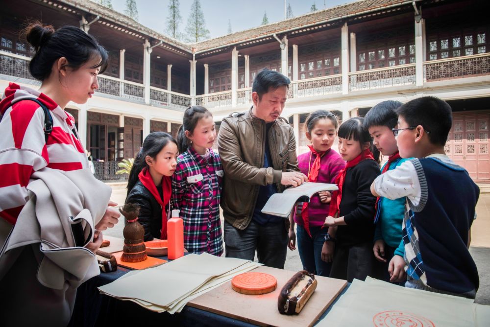 藏用之間,文字被喚醒。南潯實(shí)驗(yàn)小學(xué)自2015年起與嘉業(yè)藏書(shū)樓合作建立雕版印刷傳習(xí)基地,讓雕版文化走進(jìn)了校園,目前該校已培養(yǎng)了200多名雕版印刷的小傳人?!拔覀兿Mㄟ^(guò)學(xué)生走進(jìn)來(lái)參觀,我們走出去講解,把藏書(shū)文化傳播得更廣。”鄭宗男說(shuō)。