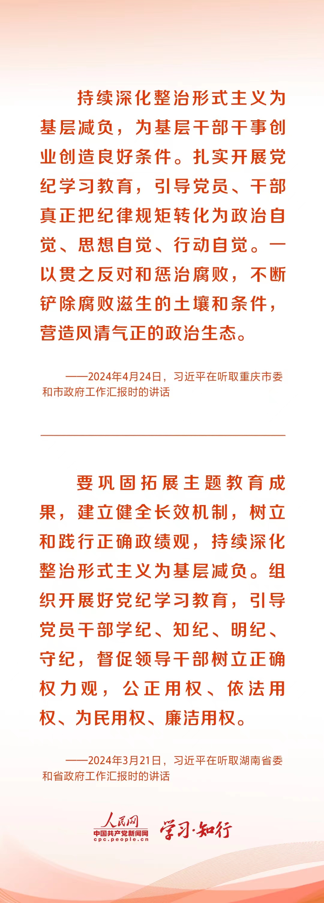 3月,湖南調(diào)研,習(xí)近平指出,黨中央明確要求為基層減負,堅決整治形式主義、官僚主義問題,要精兵簡政,繼續(xù)把這項工作抓下去。