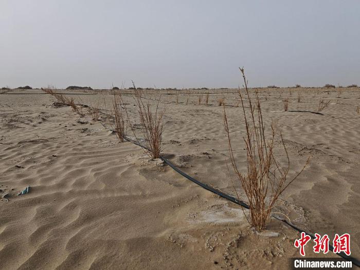 中電建25萬(wàn)千瓦光伏基地外圍種植的梭梭樹。(馬海驕 攝)