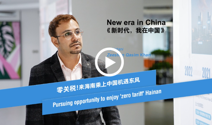 依托海南自貿(mào)港帶來的便利,巴基斯坦小伙兒吉姆(Zeeshan Qasim Khan)抓住中國機遇的東風(fēng),在海南從事國際貿(mào)易行業(yè),并點贊海南的“零關(guān)稅”政策帶來的業(yè)務(wù)便利。