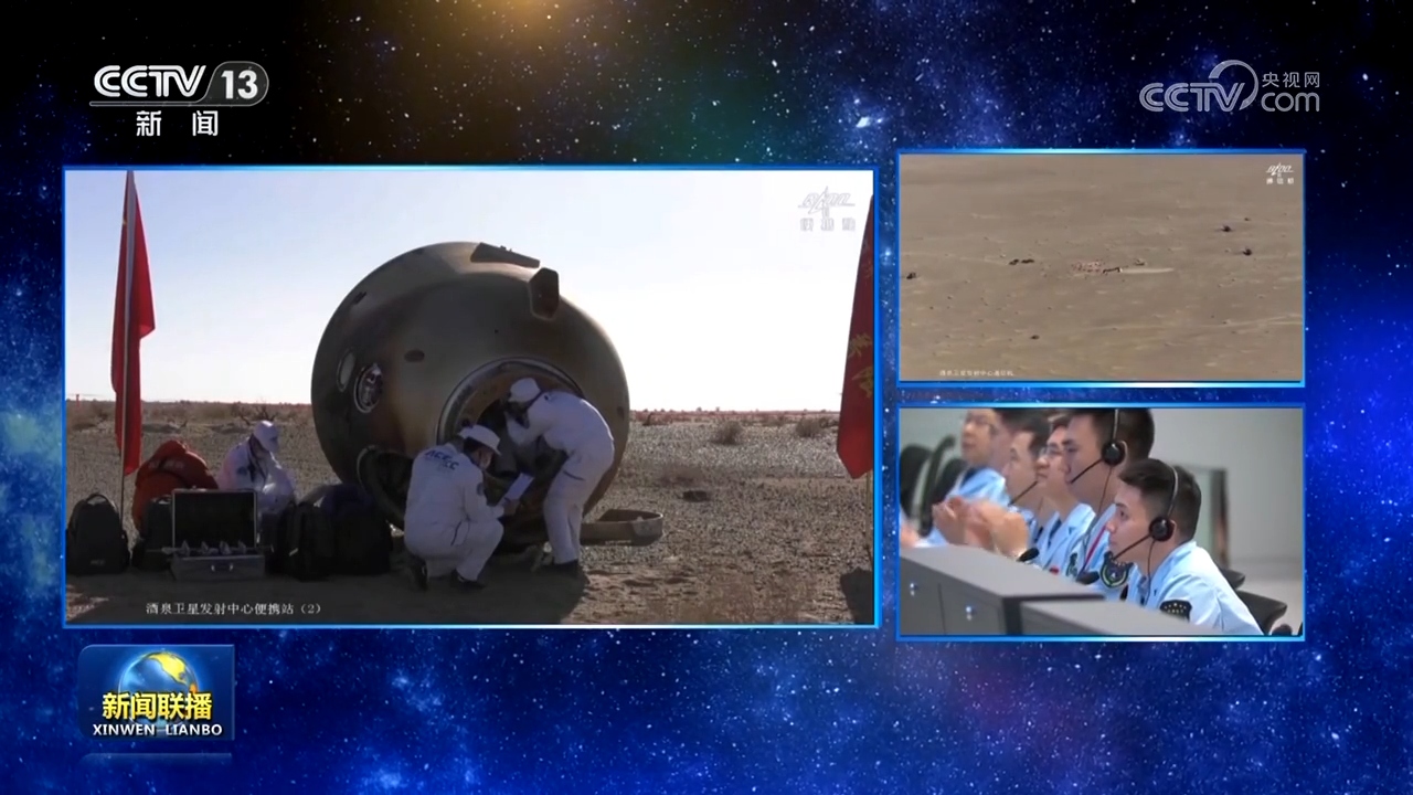 16時(shí)56分,北京航天飛行控制中心通過地面測(cè)控站發(fā)出返回指令,神舟十七號(hào)載人飛船軌道艙與返回艙成功分離。之后,飛船返回制動(dòng)發(fā)動(dòng)機(jī)點(diǎn)火,推進(jìn)艙與返回艙分離,返回艙成功著陸,擔(dān)負(fù)搜救回收任務(wù)的搜救分隊(duì)及時(shí)發(fā)現(xiàn)目標(biāo)并抵達(dá)著陸現(xiàn)場。返回艙艙門打開后,醫(yī)監(jiān)醫(yī)保人員確認(rèn)航天員身體健康。