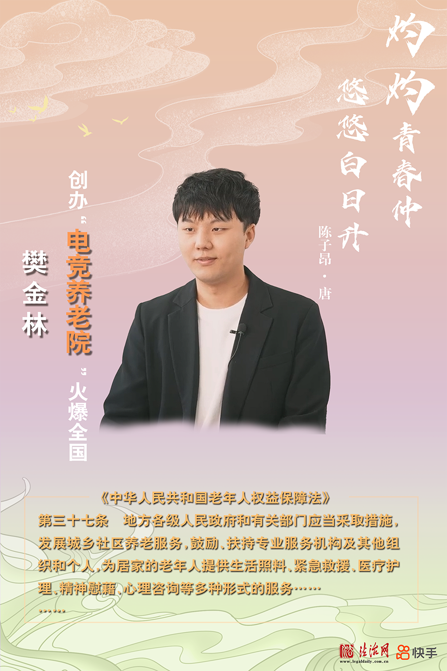 1997年出生的河南小伙樊金林(藝名:林燒)在河南省許昌市經(jīng)營了中國首個(gè)“電競養(yǎng)老院”。他把年輕人里流行的電競、蹦迪、桌游等帶進(jìn)養(yǎng)老院,還帶老人們一起拍攝短視頻,通過在社交平臺記錄他們?nèi)粘I畹狞c(diǎn)滴,讓越來越多的人了解到“原來老年生活還可以這樣有趣”。