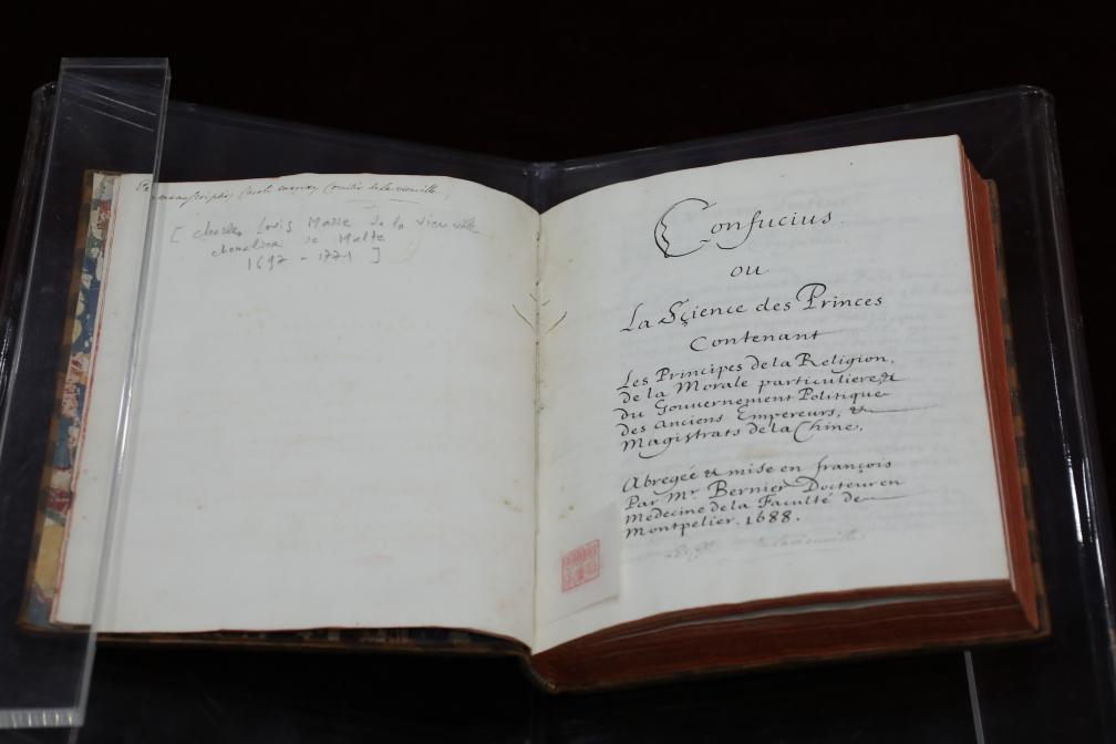 2024年1月28日典藏于中國(guó)國(guó)家圖書館中的法國(guó)國(guó)禮《論語導(dǎo)讀》(資料照片)。新華社記者張爽 攝