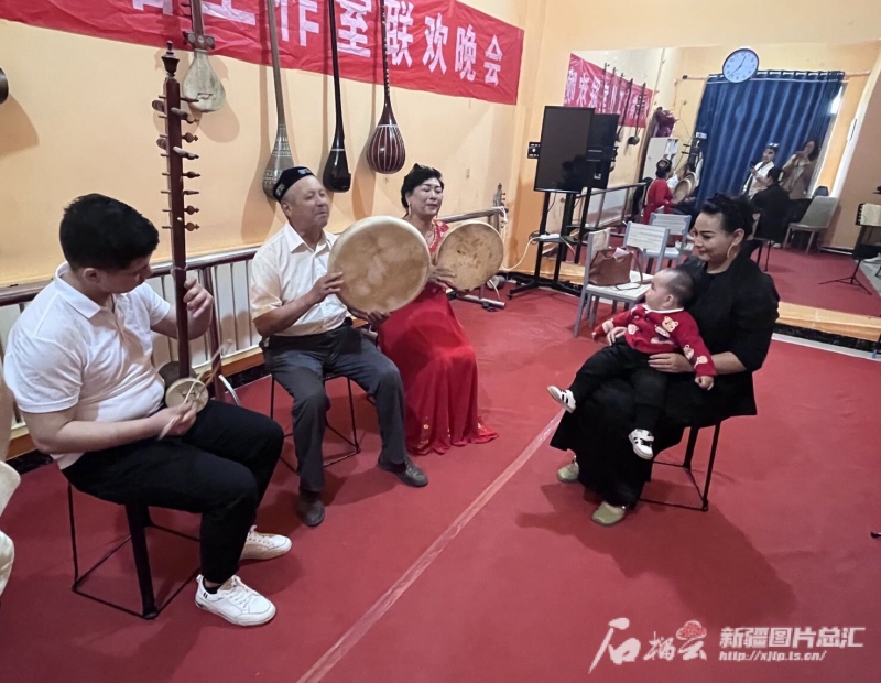 棗然木和女兒、女婿都是哈密木卡姆項(xiàng)目代表性傳承人,她的老伴賽買提·艾力木是納格拉鼓哈密市級(jí)代表性傳承人。像這樣一家有好幾位非遺傳承人的家庭,在回城鄉(xiāng)并不是個(gè)例。