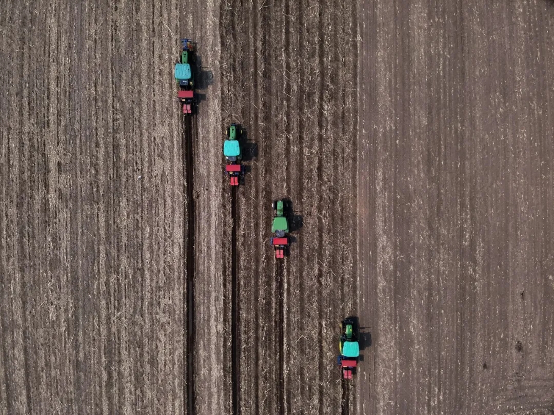 梨樹縣蔡家鎮(zhèn)敬友村誠農(nóng)農(nóng)機(jī)農(nóng)民專業(yè)合作社的社員們駕駛大型智慧化播種機(jī)播種玉米。隨著天氣逐漸轉(zhuǎn)暖,梨樹縣大田播種逐漸拉開帷幕。據(jù)了解,2024年梨樹縣春播農(nóng)作物種植計(jì)劃393.9萬畝,其中,玉米339萬畝、大豆17萬畝、水稻10.04萬畝、薯類2.8萬畝、其他農(nóng)作物播種25.06萬畝。郭敢峰 本報(bào)記者錢文波 攝