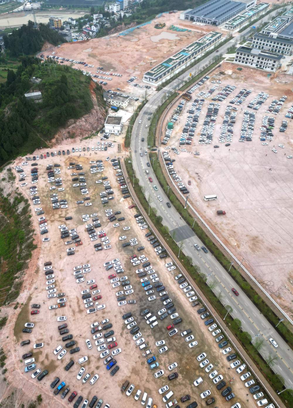 5月1日,游客車輛在貴州省黔東南苗族侗族自治州臺(tái)江縣臺(tái)盤(pán)村停車(無(wú)人機(jī)照片)。為了滿足外地游客觀看“村BA”的需求,當(dāng)?shù)乩瞄e置空地規(guī)劃設(shè)置免費(fèi)臨時(shí)停車場(chǎng),增加車位7000余個(gè),供游客免費(fèi)停車。新華社發(fā)(余天英 攝)