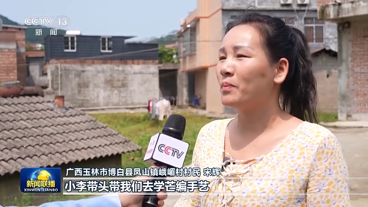 廣西玉林市博白縣鳳山鎮(zhèn)峨嵋村村民 宋輝:小李帶頭帶我們?nèi)W(xué)芒編手藝,幫我們找訂單,以前楊梅下了市,我們基本也沒什么能干的了,現(xiàn)在都有點忙不過來。