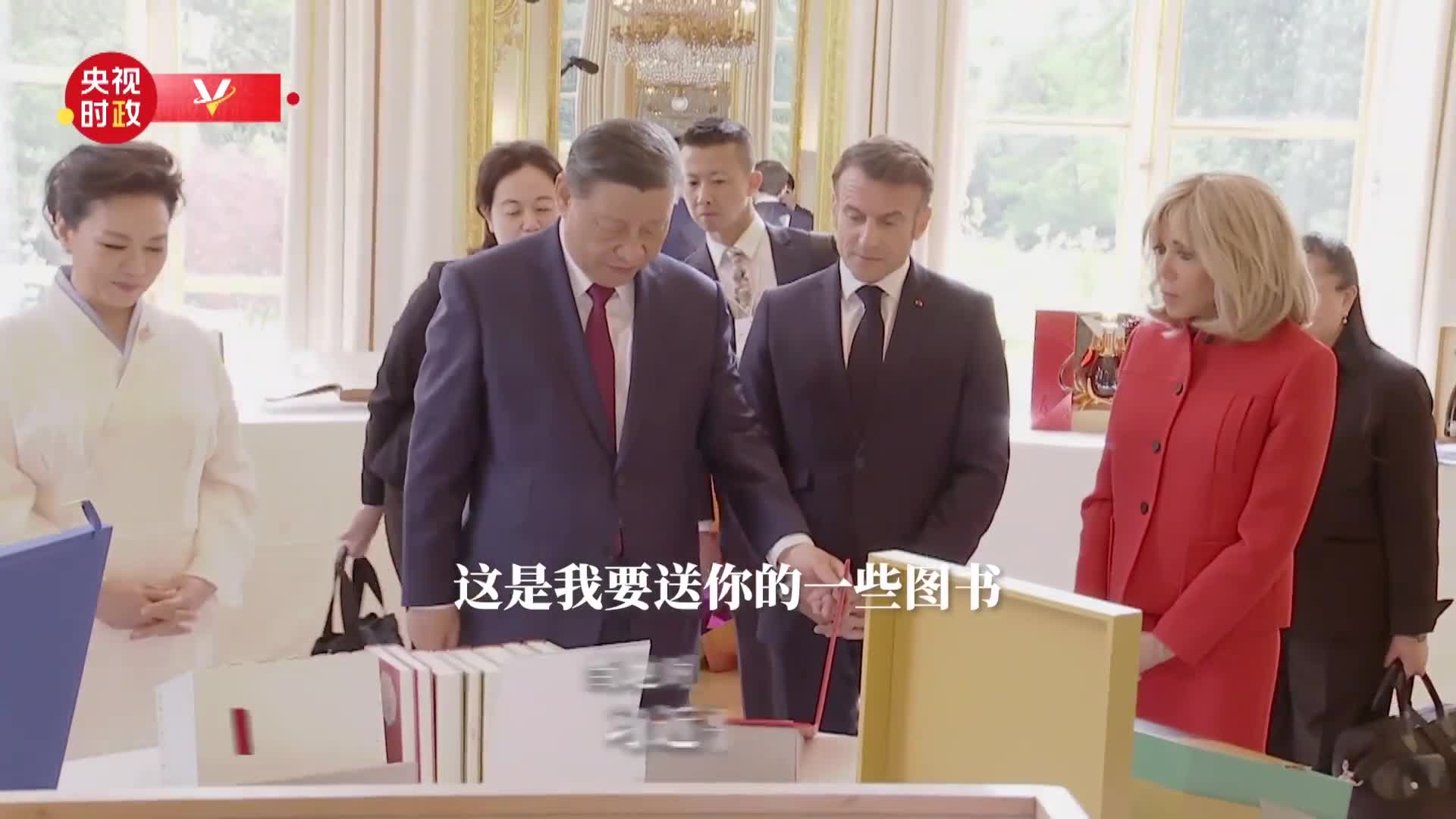 “這是我要送你的一些圖書(shū),都是中國(guó)翻譯的法國(guó)小說(shuō),中文的法國(guó)小說(shuō)。”習(xí)近平主席走到一排書(shū)籍面前,微笑著說(shuō)。