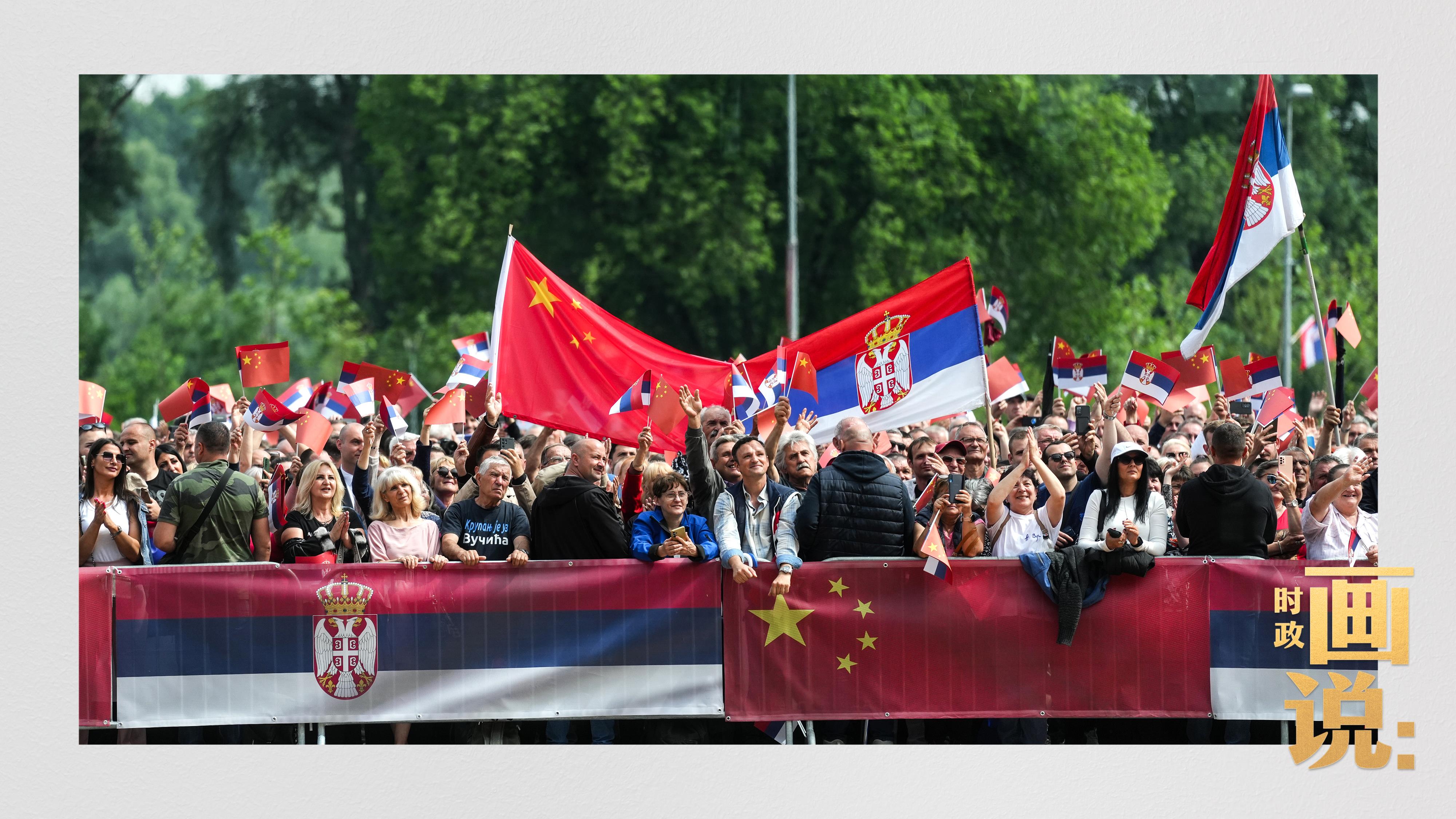 8日上午,武契奇總統(tǒng)在塞爾維亞大廈前廣場舉行隆重歡迎儀式,歡迎習(xí)近平主席。廣場前不少當(dāng)?shù)孛癖姄]舞國旗,高舉雙臂熱烈迎接遠(yuǎn)道而來的中國貴賓!
