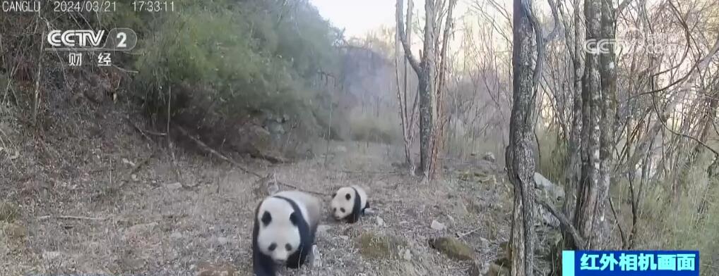 這段視頻拍攝于海拔約2000米處,大熊貓媽媽身形健壯,步伐從容地走在前面,幼崽嬌小可愛,緊緊跟在媽媽的身后。十幾分鐘后,這對“母子”的身影再次出現(xiàn)在同一條溝的另一個(gè)點(diǎn)位。