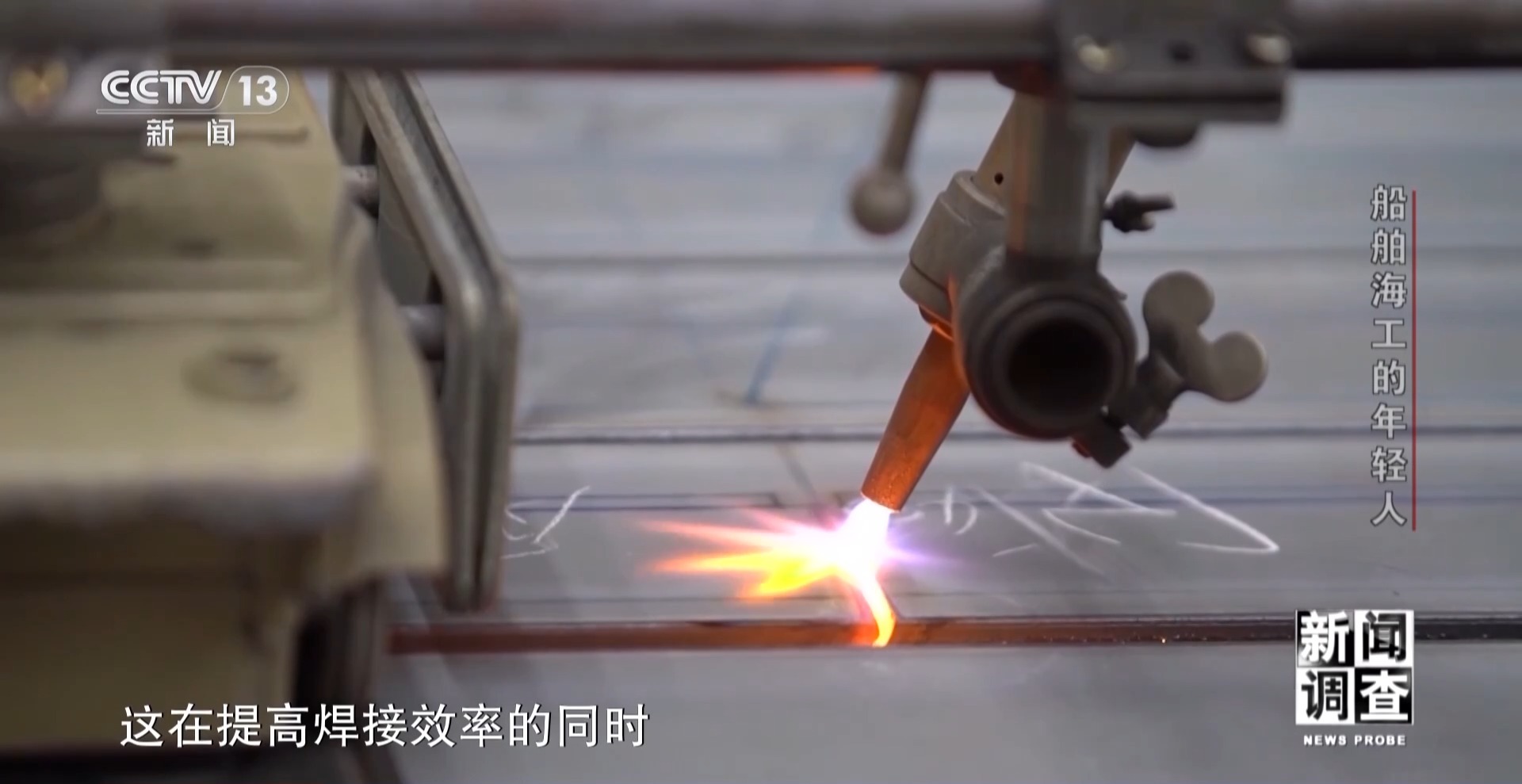 上海外高橋造船有限公司精度技術部高級工程師 鄧琳:一方面焊接效率高了,把熱量用在刀刃上了。第二它不會影響非焊縫區(qū)域的熱循環(huán),激光能把溫度集中在非常細的、窄的一條線上,就不會影響邊上的變形。