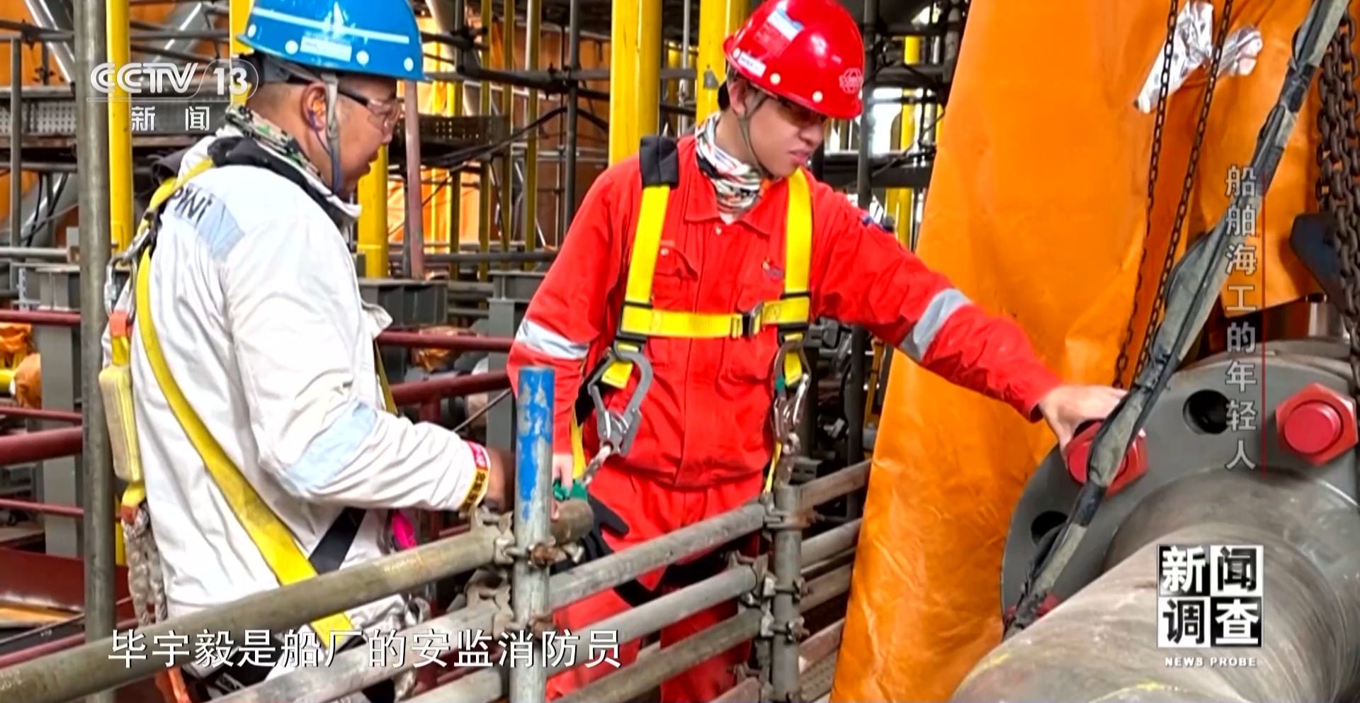 啟東中遠海運海洋工程有限公司安監(jiān)消防員 畢宇毅:那個船非常漂亮,也是我進入這個行業(yè)第一個學習的項目,在一個300多米的船上,每天能走兩萬步。等到項目交付的那一刻,等這個船嶄新擺在碼頭的時候,大家都感覺非常自豪。那一刻你也不知道看的是什么,可能看的就是過去兩年半的青春奉獻在了這個大國重器上面。