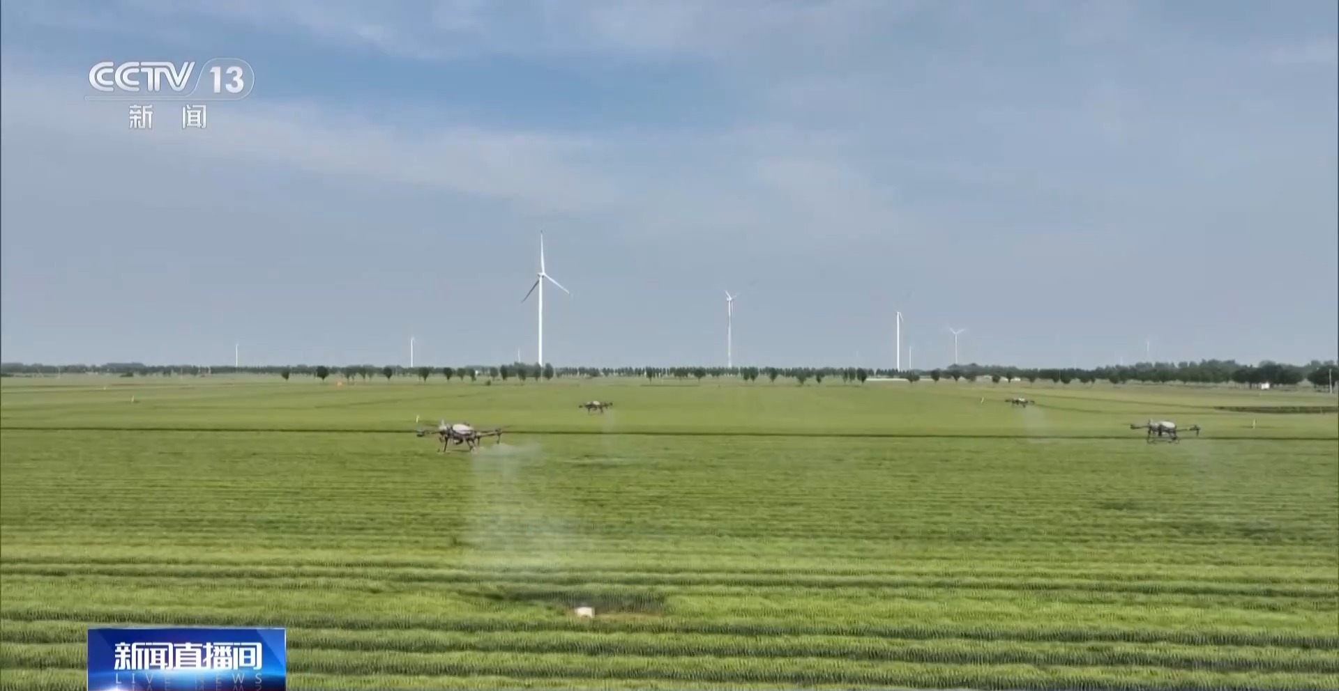 眼下正是小麥灌漿關(guān)鍵期,在山東省昌邑市柳疃鎮(zhèn)青阜農(nóng)業(yè)綜合體的一片高標準農(nóng)田里,幾架飛防無人機一字排開,白色水霧均勻噴灑在綠油油的麥田里。