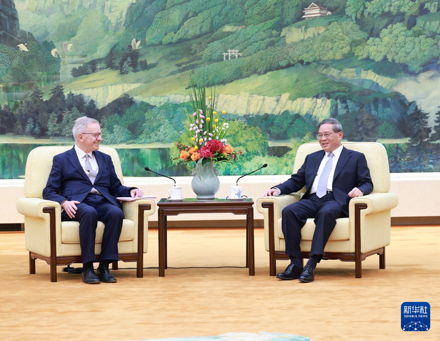 5月15日上午,國(guó)務(wù)院總理李強(qiáng)在北京人民大會(huì)堂會(huì)見(jiàn)英中貿(mào)易協(xié)會(huì)主席古沛勤率領(lǐng)的英中貿(mào)協(xié)訪華團(tuán)。新華社記者 王曄 攝