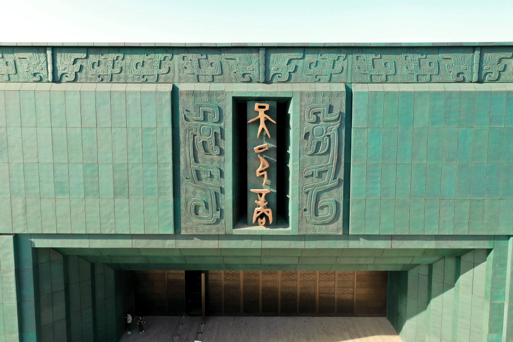 兩個(gè)多月前,安陽殷墟博物館新館正式開館。遙遙望去,新館造型頗具巧思——鼎形的建筑矗立水畔,古銅色的大門,青銅飾面為幕墻,“大邑商”仿佛從3000年前款款走來。