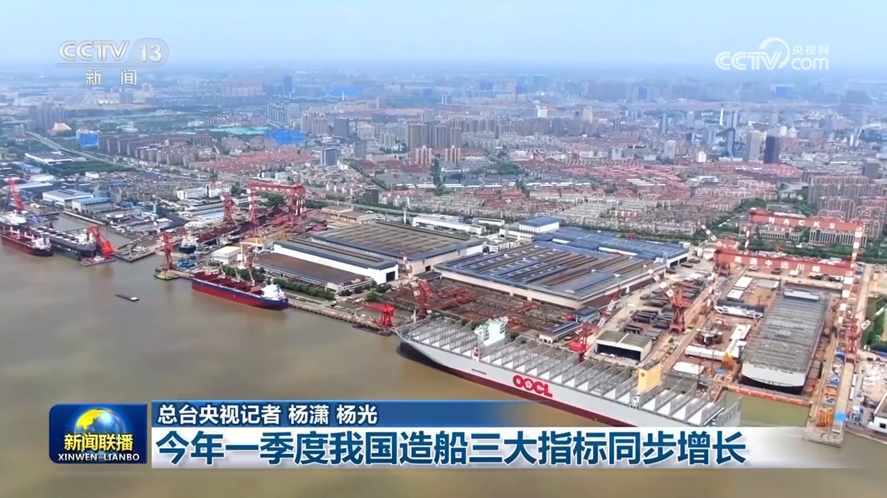 從造船省市分布來看,江蘇、上海、遼寧、山東、浙江5個(gè)省市的造船完工量總數(shù)占到全國總數(shù)的90.1%。其中,造船大省江蘇一季度造船完工量占到全國的50.1%,拿下了全球超過30%的訂單,數(shù)量多的同時(shí),船舶的數(shù)字化、智能化、綠色化水平也越來越高。前不久,江蘇多條高技術(shù)船舶紛紛試航或交付,像這艘全球重箱裝載量最大的集裝箱船,多項(xiàng)指標(biāo)達(dá)到世界領(lǐng)先水平,建造這樣一艘船,目前僅需14個(gè)月的時(shí)間。
