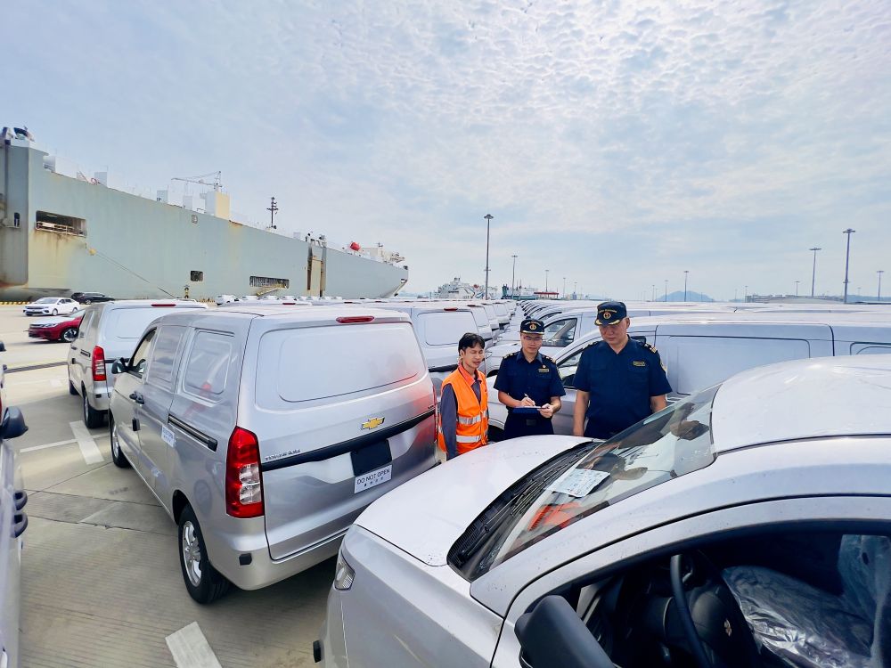 廣州海關所屬南沙海關關員對出口汽車進行監(jiān)管。(受訪者供圖)