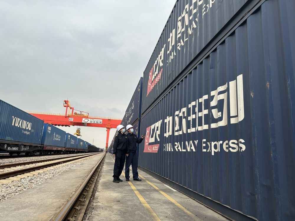 廣州海關所屬廣州車站海關關員對中歐班列出口貨物進行監(jiān)管。(受訪者供圖)