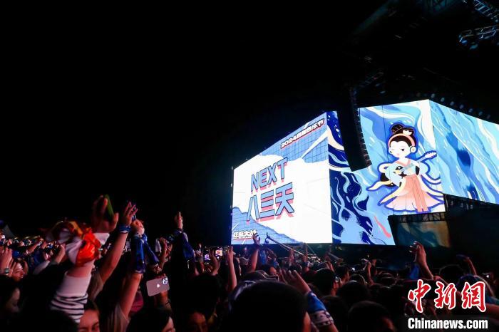 西施音樂節(jié)現(xiàn)場,觀眾為臺灣“八三夭”樂隊(duì)歡呼?!≈T暨臺辦供圖