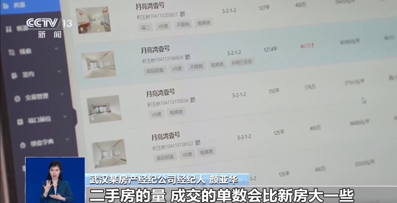 武漢某房產(chǎn)經(jīng)紀公司經(jīng)紀人 顏亞華:按成交量來說,二手房成交的單數(shù)會比新房大一些,因為二手房的單價可能會更低一點。