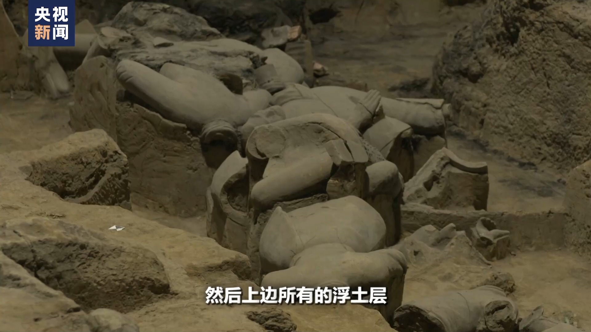 秦始皇帝陵博物院副院長 周萍:其實秦始皇帝陵博物院出土,不僅僅只有彩繪陶俑。現(xiàn)在觀眾去現(xiàn)場去看的時候,最常看到的就是幾種材質(zhì),一種就是我們的彩繪陶俑,一種是坑內(nèi)的土遺址,一種我們銅車馬是金屬文物;其實在土遺址里面,有很多很多這種木質(zhì)的遺存。它這個就是我們這個隔梁在建的時候,實際上就相當于用木頭去搭了一個相當于小房子,把這些彩繪俑保存在里面。