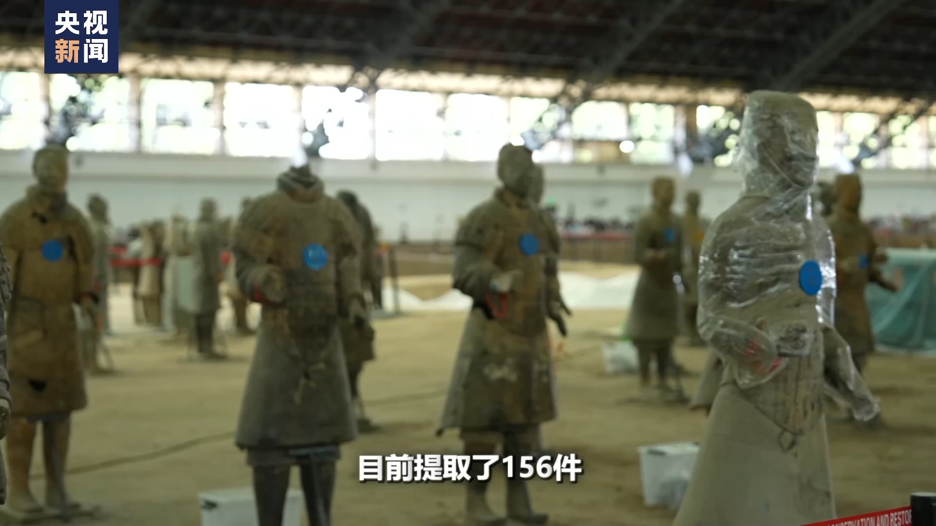 秦始皇帝陵博物院文物保護修復專家 蘭德省:第三次考古發(fā)掘,主要在秦俑一號坑T23號探方。在這個方位共挖掘了256件兵馬俑,我們剛才已經(jīng)看到目前提取了156件。其中我們修復了140多件,還有一些我們正在修復。