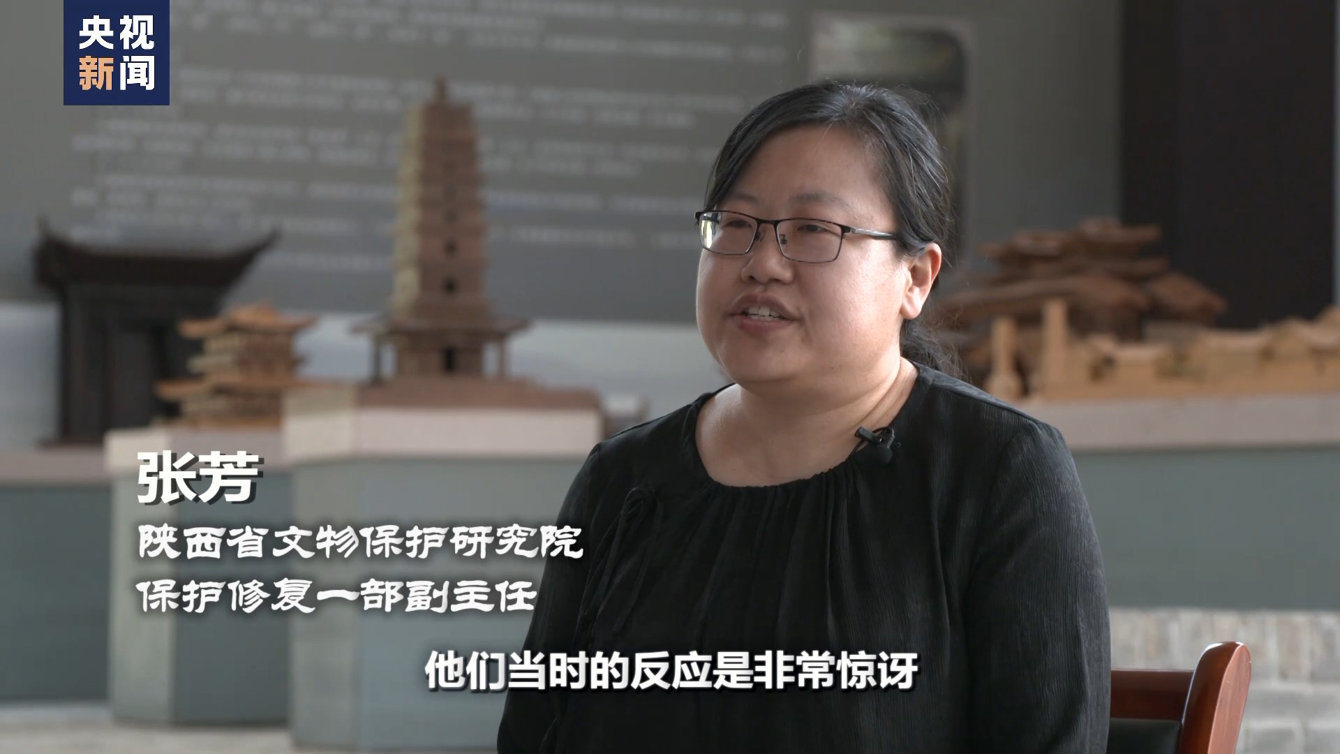 陜西省文物保護研究院保護修復一部副主任 張芳:他們當時的反應(yīng)是非常驚訝,因為這種純粹的,沒有用一根釘子的榫卯結(jié)構(gòu)層層疊疊,在上面天宮樓閣的一個呈現(xiàn)。他們在法國是完全見不到,他們也想象不到。